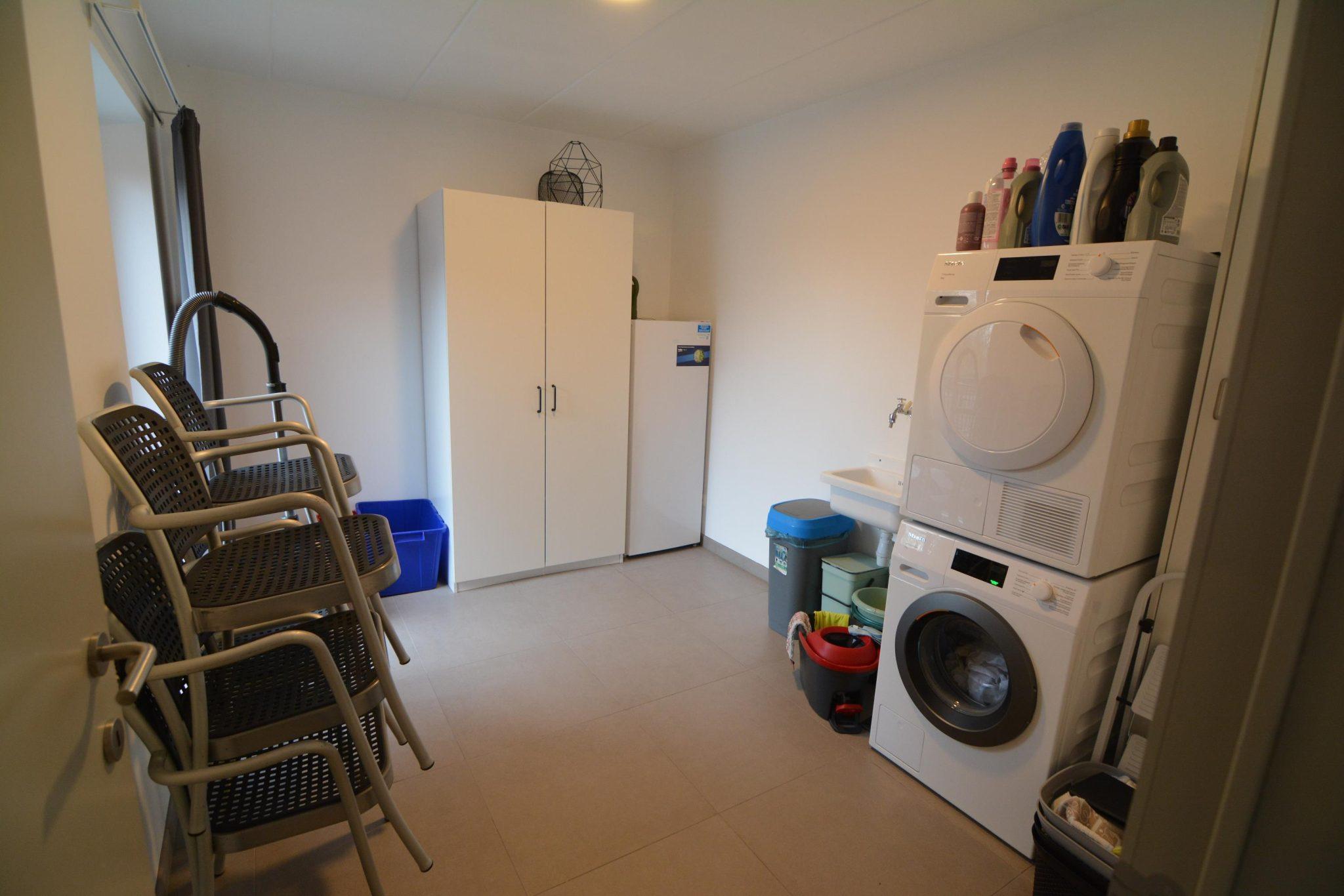 Recent appartement gelegen op de eerste verdieping, bestaande uit een inkomhal met vestiaire, apart toilet, gezellige woonkamer met volledig ingerichte open keuken, ruim zuid georiënteerd terras, 2 slaapkamers, ruime berging/wasplaats en badkamer met inloopdouche. Er is ook een autostaanplaats en ruime buitenberging voorzien. Geen gemeenschappelijke kosten !