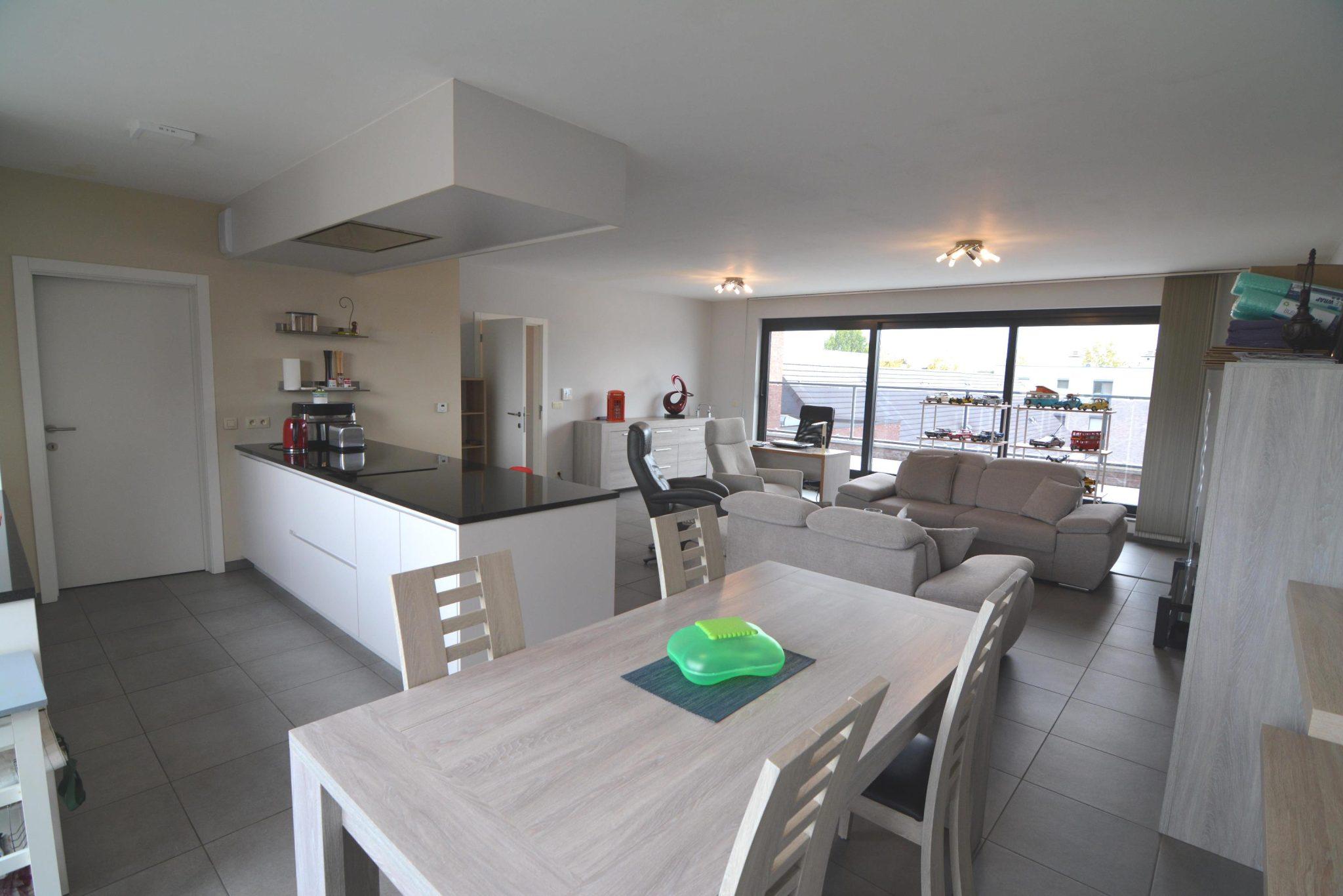 Recent ruim dakappartement gelegen op de 3de verdieping ( lift), bestaande uit een inkomhal met vestiaire en apart toilet, ruime woonkamer met veel lichtinval, volledig ingerichte open keuken, berging/wasplaats, badkamer met dubbele lavabo's, bad en inloopdouche, 2 ruime slaapkamers en 2 ruime zonnige terrassen. Onder het gebouw is er een ruime autostaanplaats met kelderberging inbegrepen. Geen gemeenschappelijke kosten !!!