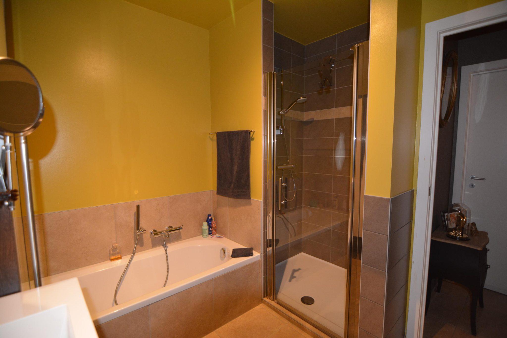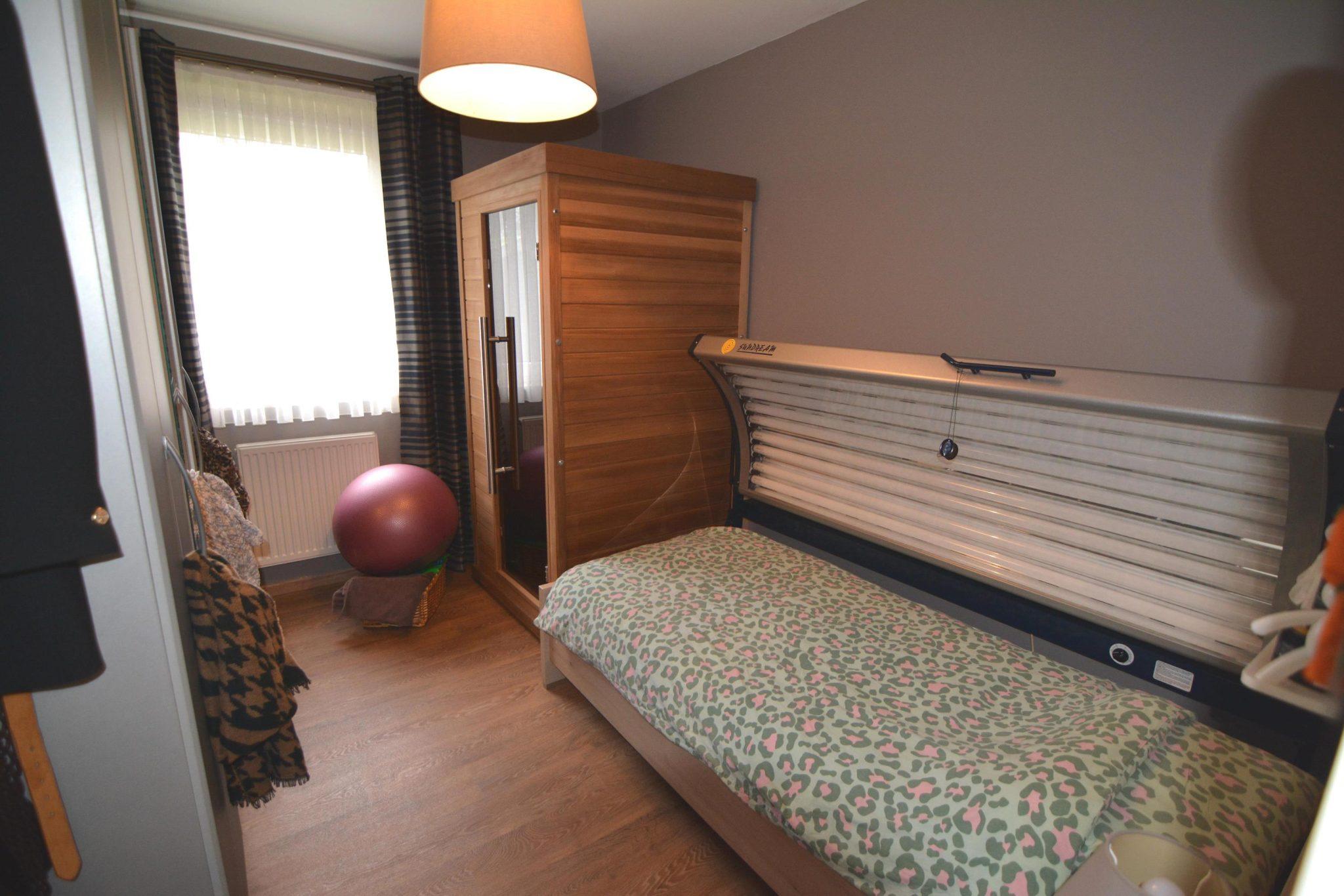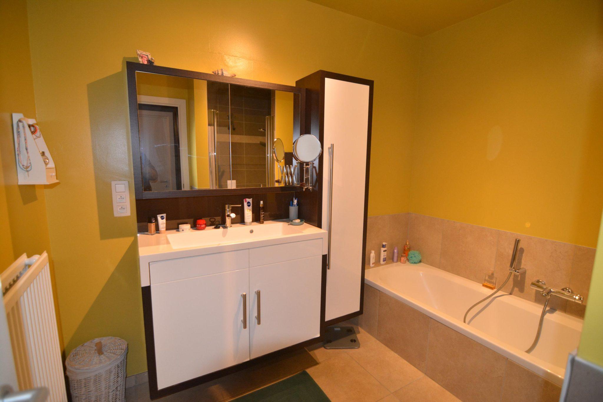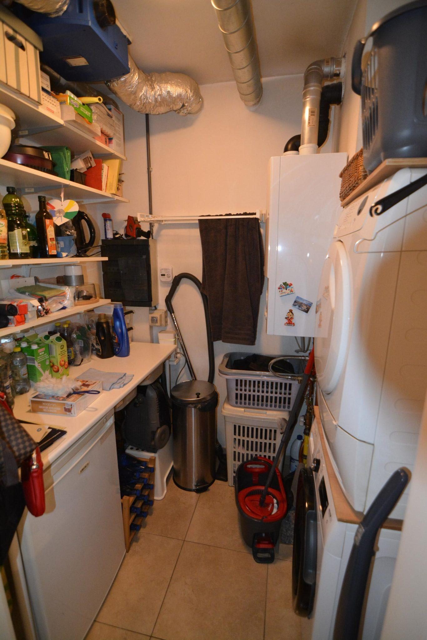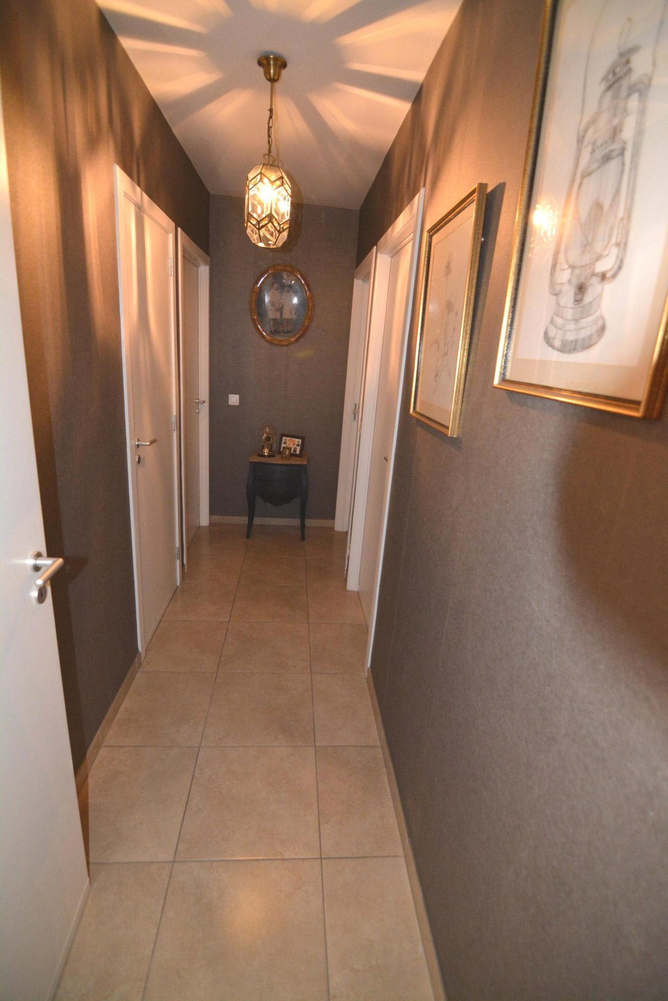 We betreden het gelijkvloers appartement via de inkomhal, deze komt uit in de ruime leefruimte, deze is voorzien van grote raampartijen over de volledige breedte met zicht op de tuin. Via een schuifraam heeft men rechtstreeks toegang tot de mooie omheinde tuin en het terras. De tuin is ook bereikbaar via een poortje en beschikt over een tuinhuis om spullen in op te bergen. Verder is er een open keuken met eiland, de keuken is volledig uitgerust en heeft toegang tot de berging. Via de nachthal bereikt men nog een apart toilet, twee slaapkamers en een badkamer met zowel douche als ligbad. Tot slot heeft het appartement een ondergrondse autostaanplaats en privatieve kelderberging inbegrepen in de prijs. Er is ook een gemeenschappelijke fietsenstalling en gemeenschappelijke tuin.