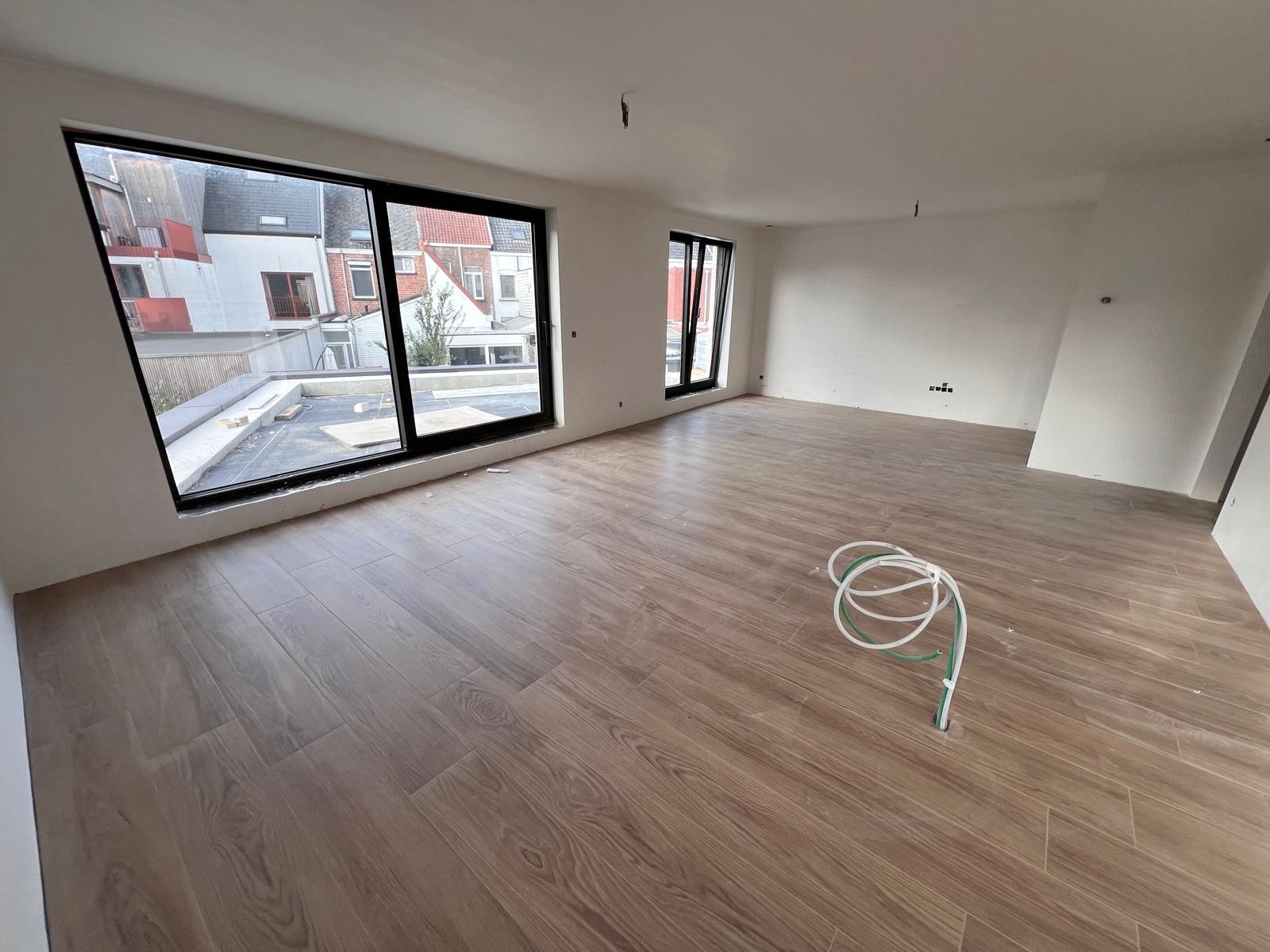 Dit mooie appartement op de 1ste verdieping werd reeds gedeeltelijk afgewerkt, het heeft 2 slaapkamers en een bewoonbare oppervlakte van 111 m² met een zuid-georiënteerd terras van 24m². In de prijs is een autostaanplaats met berging in de ondergrondse parking inbegrepen alsook 2 bovengrondse afgesloten fietsenstallingen. In dit energiezuinige appartement zijn geavanceerde technologieën toegepast die niet alleen het comfort van bewoners verbeteren, maar ook bijdragen aan een duurzame toekomst. Zo is het appartement voorzien van een geothermische warmtepomp die de natuurlijke warmte van de aarde benut om het verwarmings- en koelsysteem van het appartement te voeden, de woonkamer en elke slaapkamer zijn voorzien van een eigen thermostaat zodat in elke ruimte de perfecte temperatuur wordt gerealiseerd. Het appartement beschikt ook over individuele zonnepanelen en een ventilatiesysteem type D. Fiscaal betekent dit dat u de eerste 5 jaar geen onroerende voorheffing dient te betalen. Dit appartement wordt verkocht onder BTW-stelsel en wordt opgeleverd in juli 2026. De akte zal verleden worden bij oplevering.